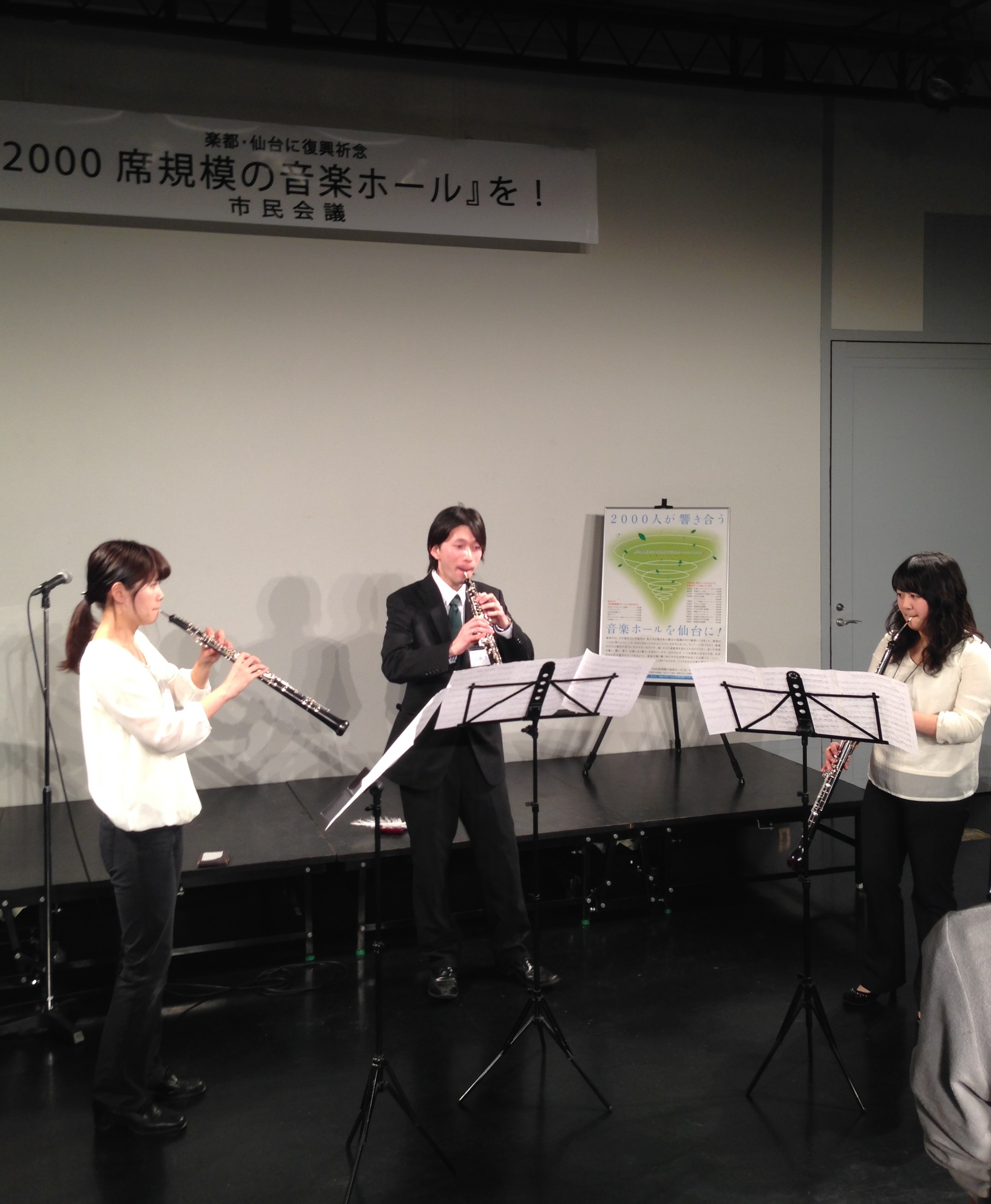 最後に、いわき芸術文化交流館「アリオス」支配人の大石時雄さんの「東北の中心である仙台には、是非とも2000席以上の音楽ホールが必要だ」という力強いスピーチと大澤隆夫世話人(音楽の力による復興センター・東北代表理事)による締めの挨拶で「賛同者交流会」は閉会しました。